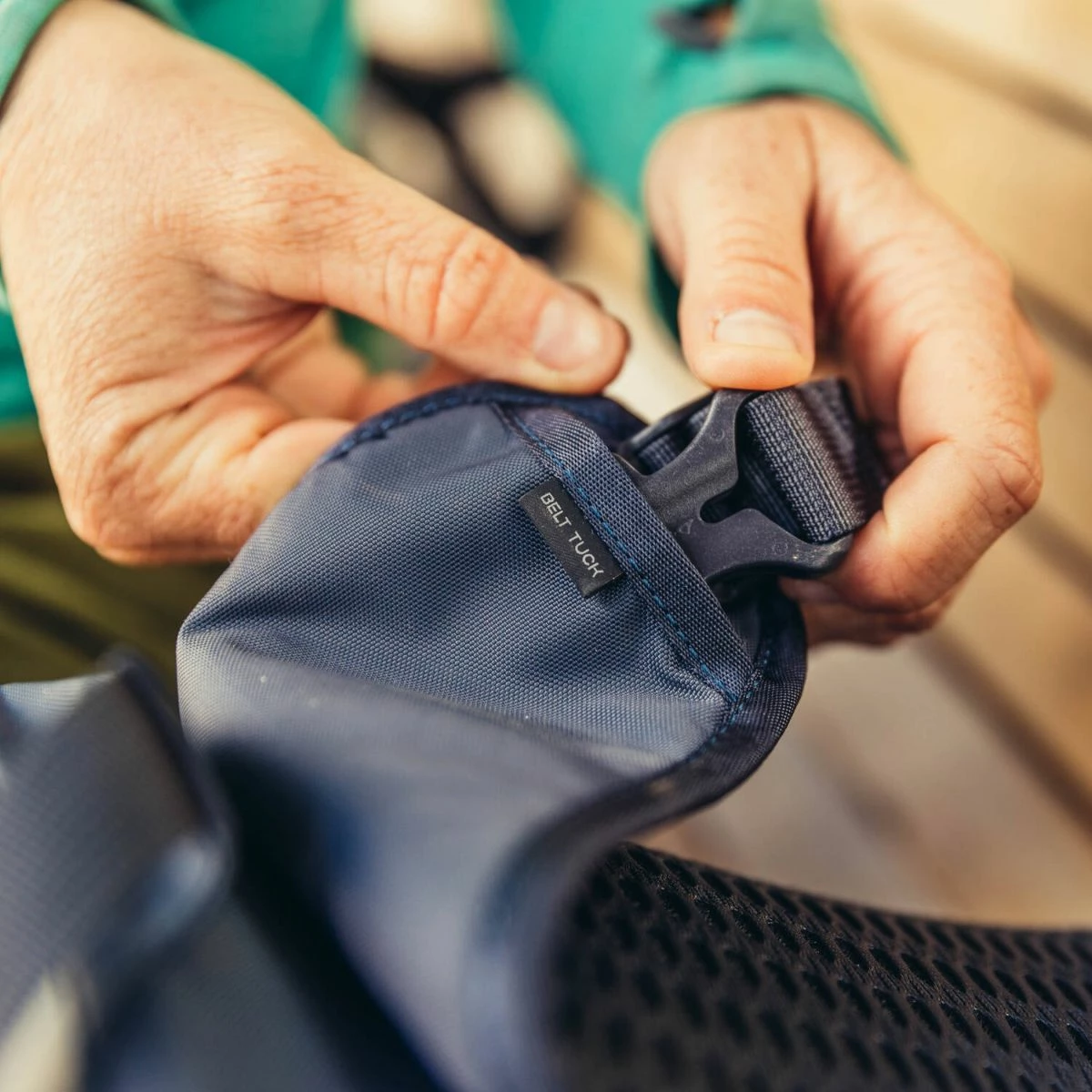 β’ 3D-suspended lumbar pad with tuck-away webbing hipbelt