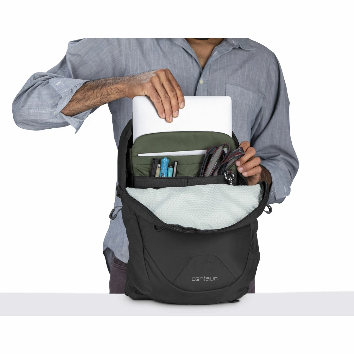 Reliable and refined, this functional 22-liter pack is fully capable of carrying your everyday essentials anywhere you need to go. An adjustable sternum strap, breathable backpanel and soft harness make for a pleasant carrying experienceβcommute to the office, campus or your local river boat meeting in comfort and style. Featuring main compartment organization for day-to-day necessities, a padded laptop sleeve, easy-access mesh side pockets and a loop for your tail light. The Centauri is a daily gear hauler that will help keep you on the go and on time for all of lifeβs events with the fit, comfort and organizational solutions youβve come to expect from Osprey.