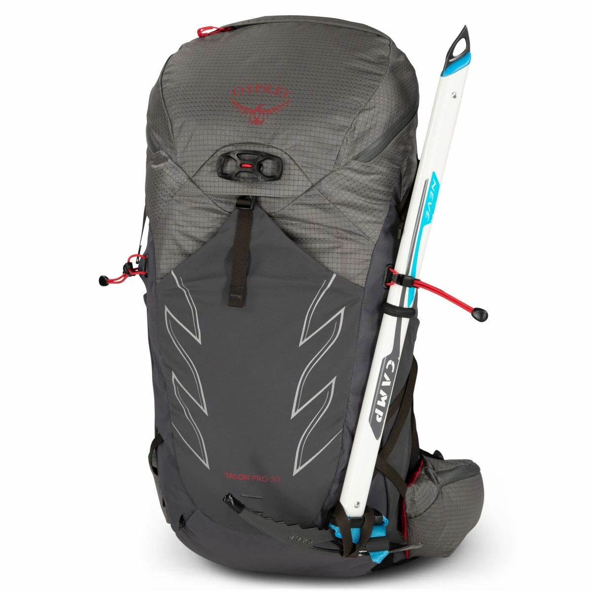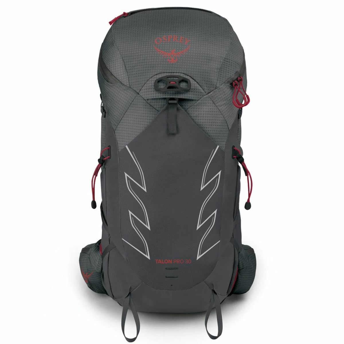 Heading out for a demanding day hike or light and fast overnighter? Either way, the Osprey Talon Pro 30 is up to the challenge. Light but tough Nanofly® fabric keeps the weight in check. An injection-molded backpanel and continuous-wrap harness and hipbelt move with you over challenging terrain. This top-loading pack features a hydration reservoir sleeve, dual zippered hip pockets and attachment points for ice axes and trekking poles. Constructed with ultra-high-molecular-weight polyethylene ripstop, GRS-certified recycled materials and PFC-free DWR coating.
