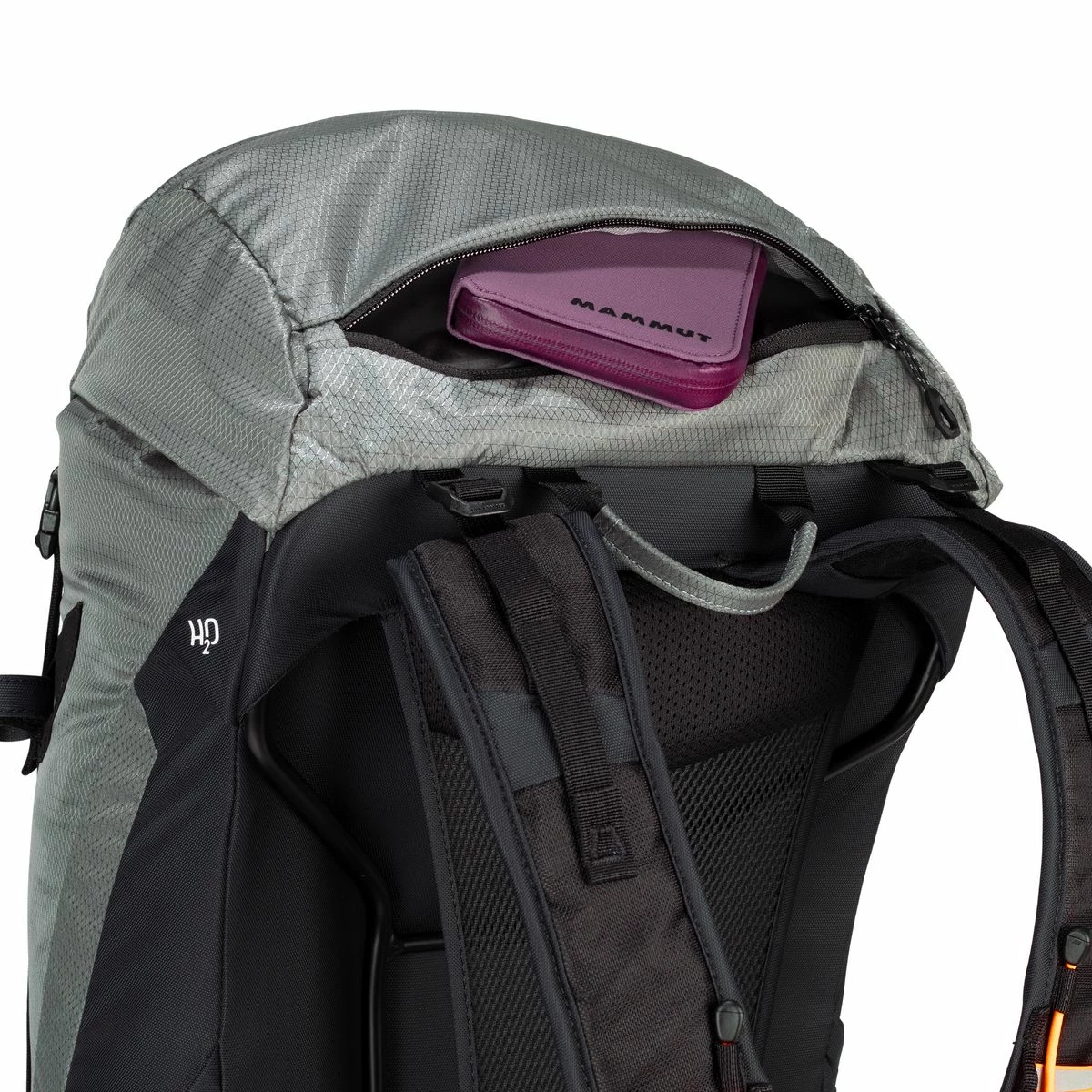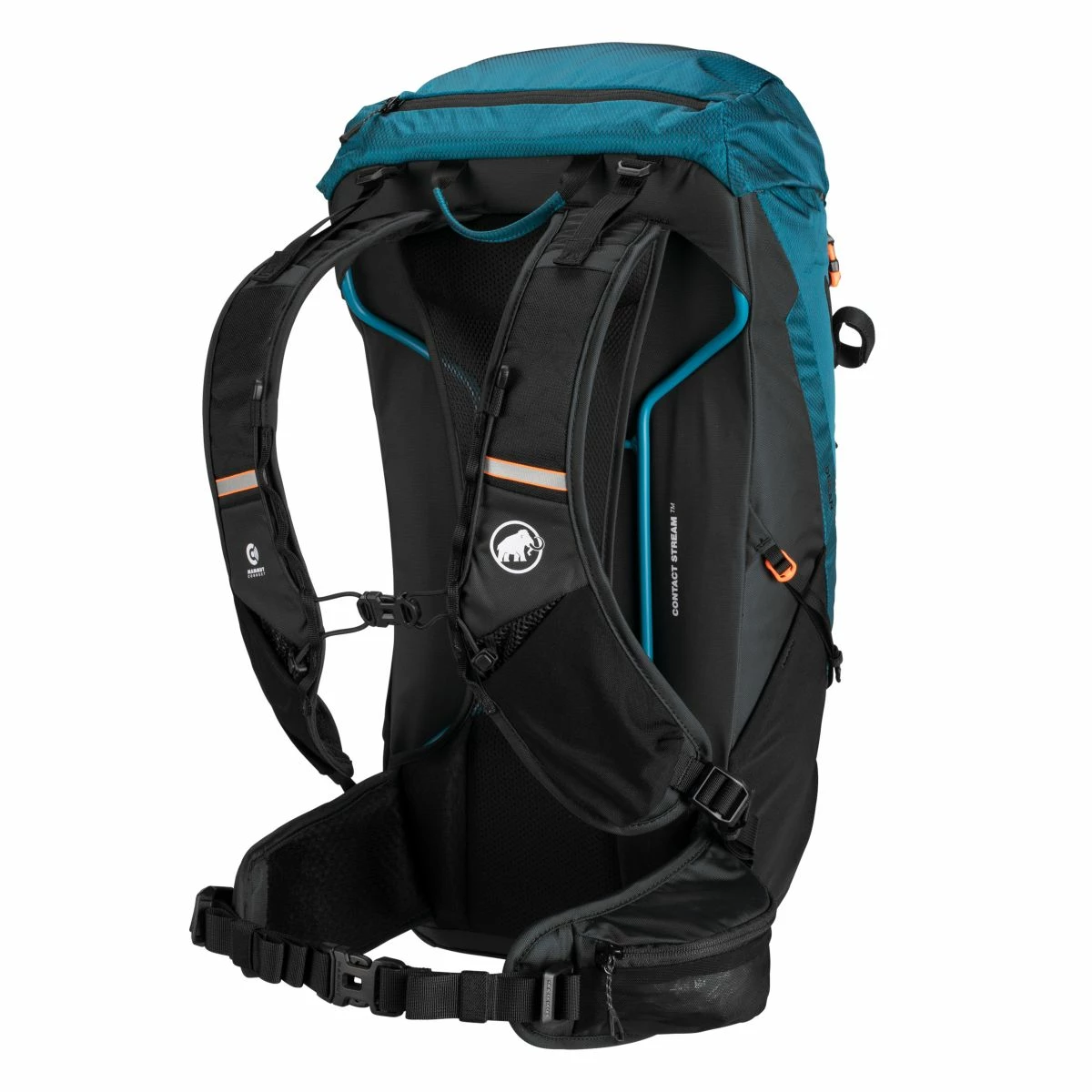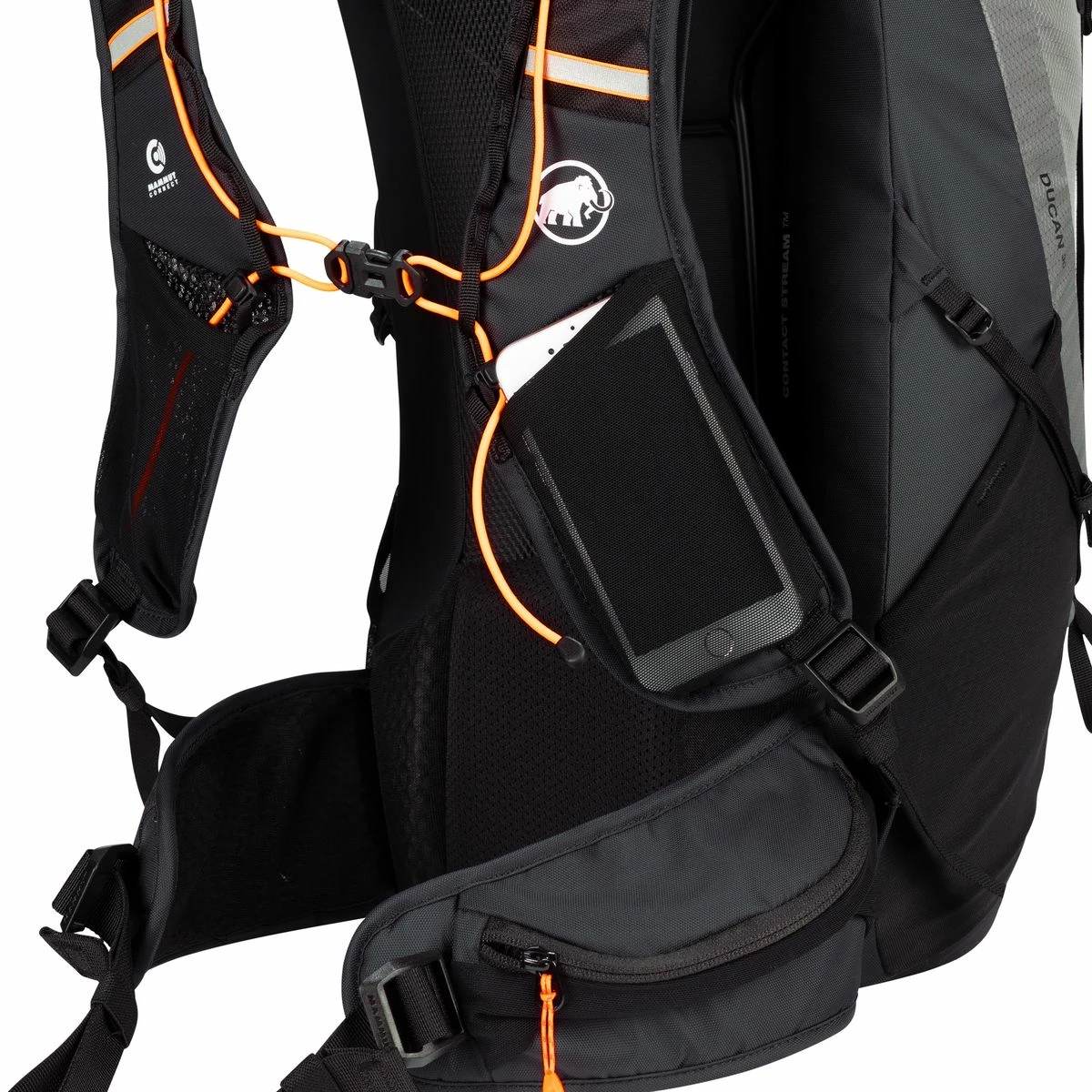 The Mammut Ducan 30 impresses above all with its light weight. The side pockets are positioned within easy reach even when carrying the backpack, true to the principle of βaccess on the go.β There is also a mesh pocket on the shoulder strap. Thanks to the excellent ventilation for the back provided by the air space suspension system, the Ducan 30 promises exceptional comfort, further enhanced by the elasticated chest strap. Ducan 30. A hiking backpack with practical features.