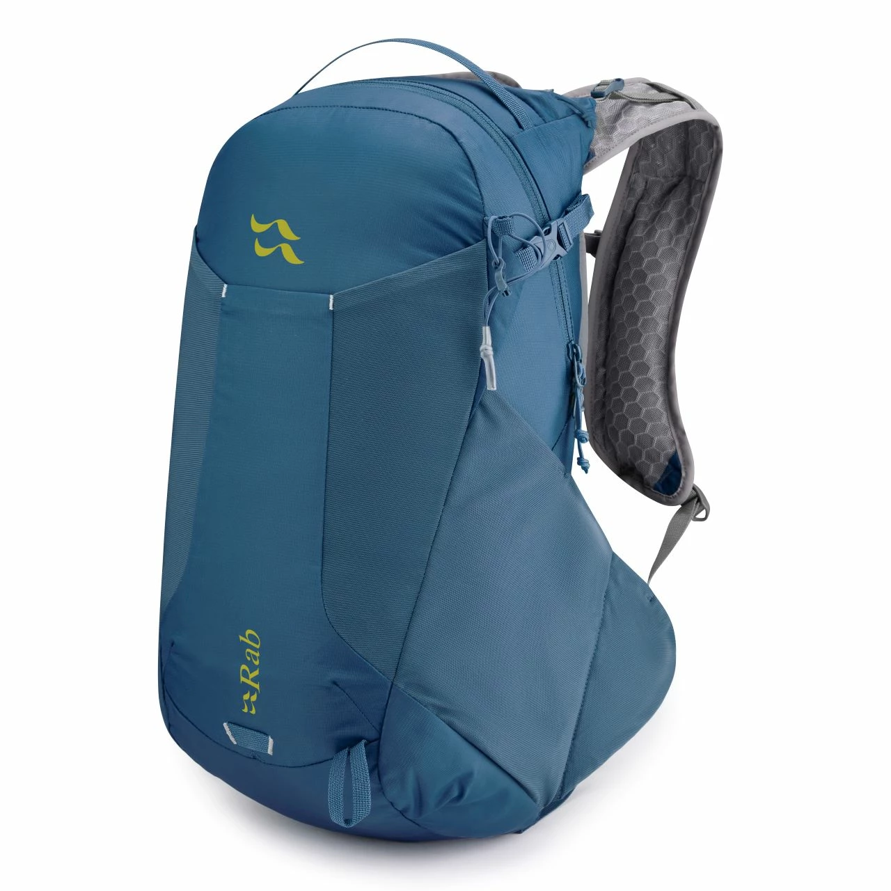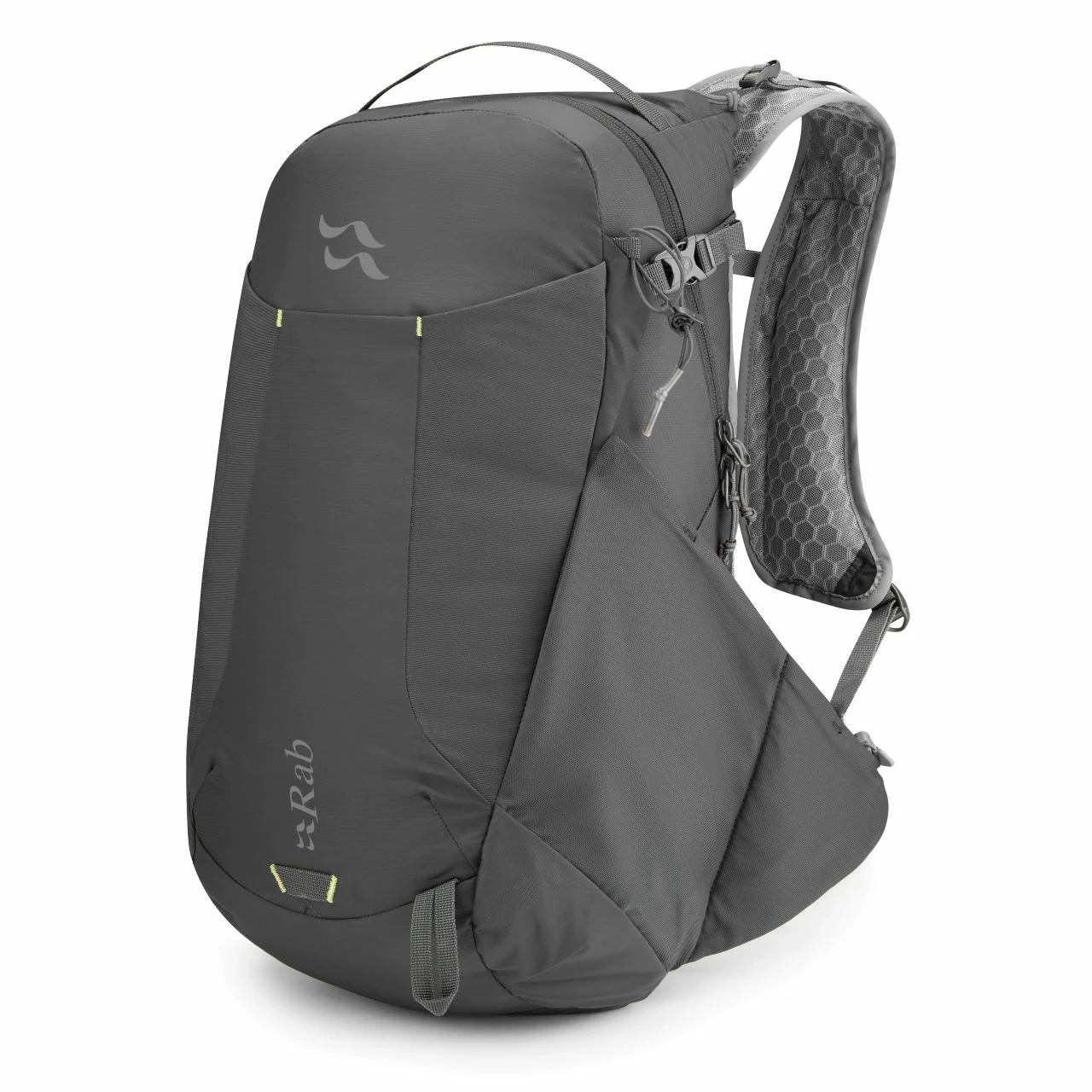The Rab Aeon LT 25 is the largest Aeon LT pack, offering generous volume to carry all your gear in wild, mountain terrain. Ideal for fast paced, committed ascents and even ultralight biviβs or hut nights. Moving with you, the responsive and flexible Air Contourβ’ back system keeps the air flowing on intense ascents. Close-fitting and body contouring, the double strap harness and moulded back panel provide a comfortable, secure, bounce-free carry. Completed with a robust 70D construction now made with 50% recycled nylon, the Aeon LT is ideal for clocking miles over rugged ground.