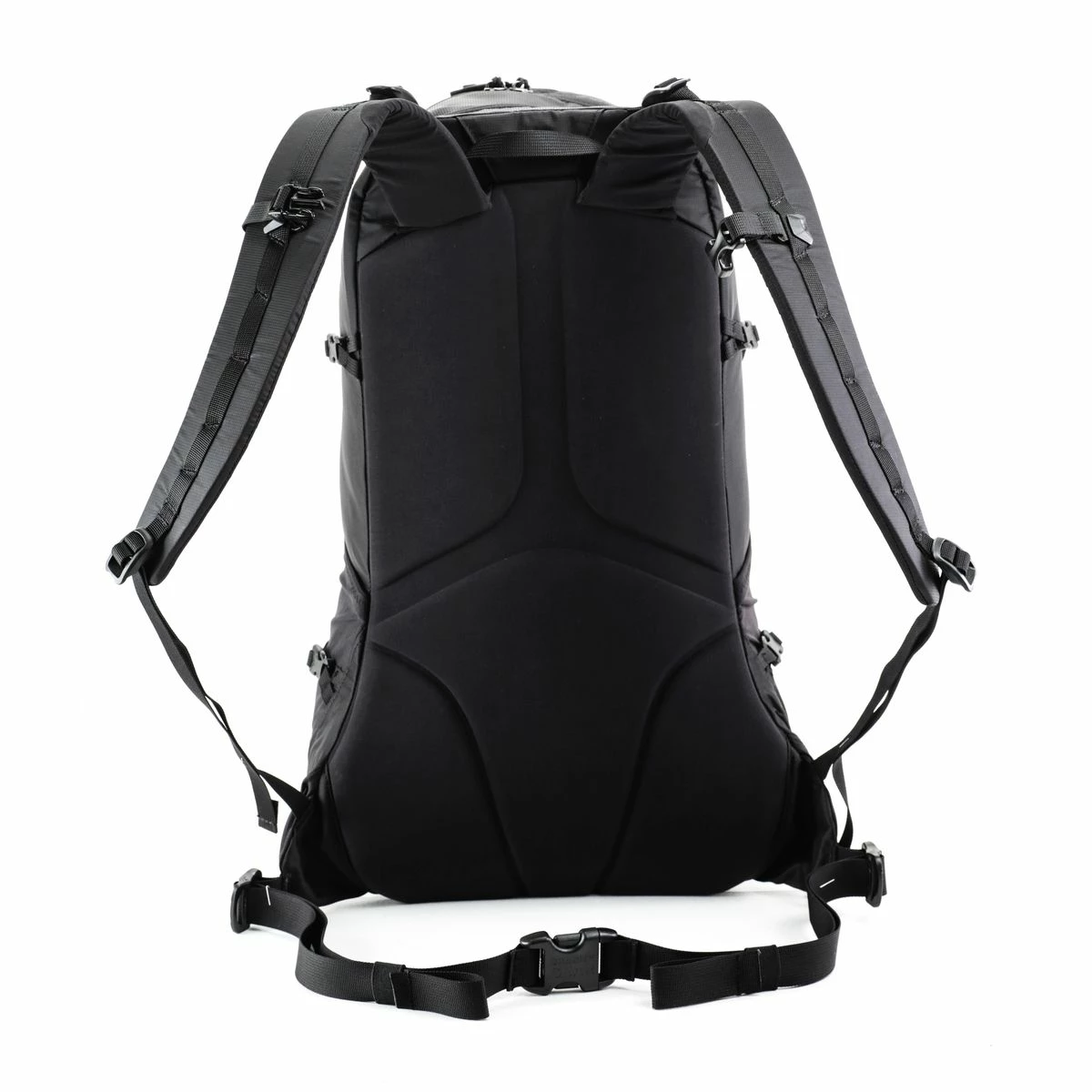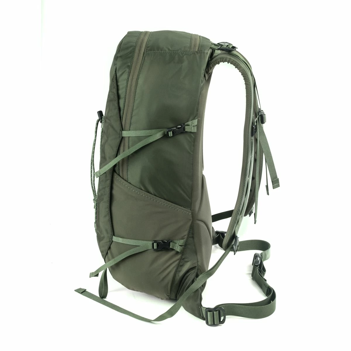 This pack is built for the hiking trails. Granite Gear has boiled down their ultralight multi-day pack knowledge into a day hiking pack. Utilizing the iconic Granite Gear arch system to anchor your pack down, the weight is distributed to a thin frame sheet and down to the hip-hugging webbing waist belt. It’s a 22-liter pack, ready to carry all you’d need for the day and then some, with added volume in the external stretch woven side pockets and large front pocket with an overlapping cord system.