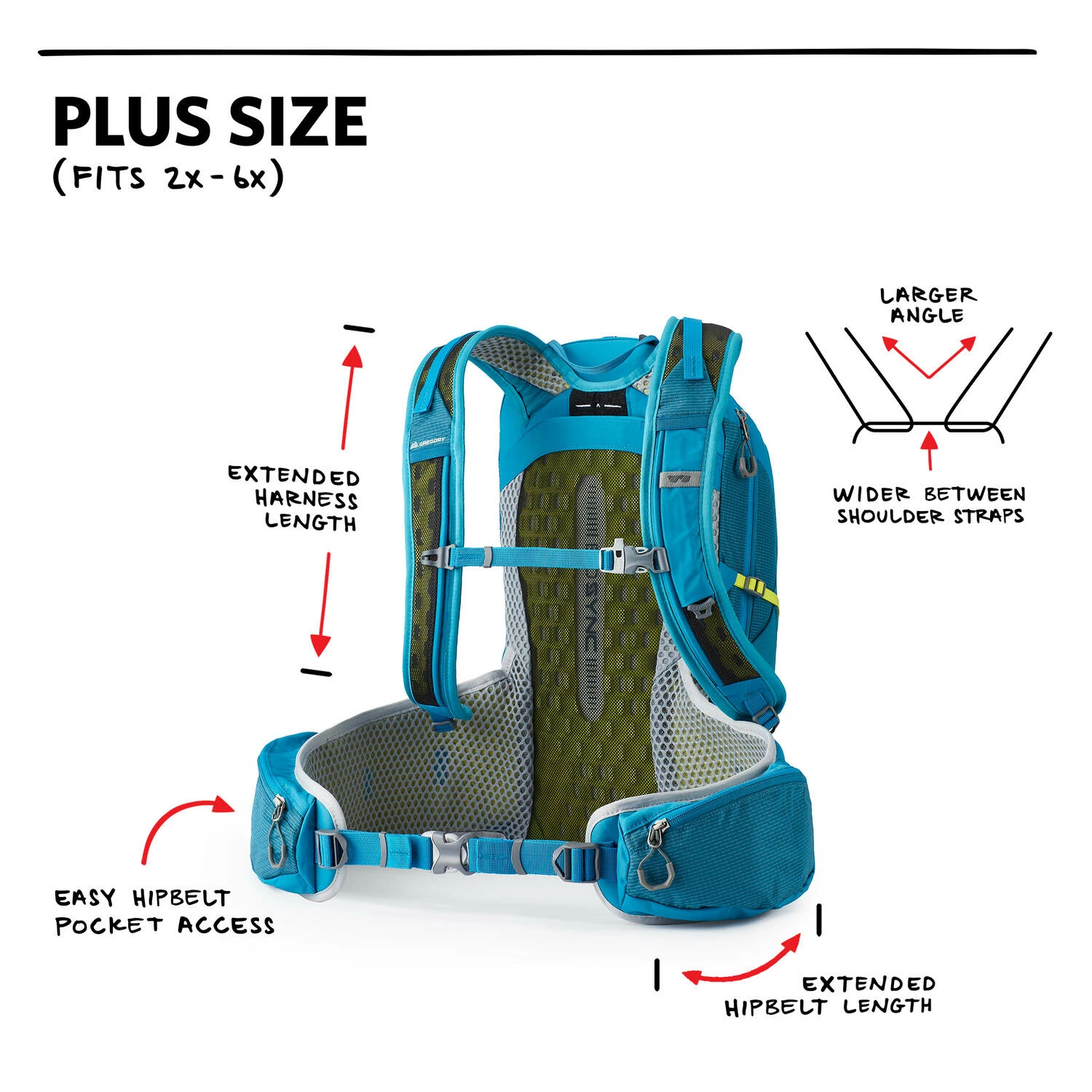 - Plus Size packs are designed with extended length shoulder straps and hip belts, plus additional fit revisions to accommodate larger body shapes and sizes.