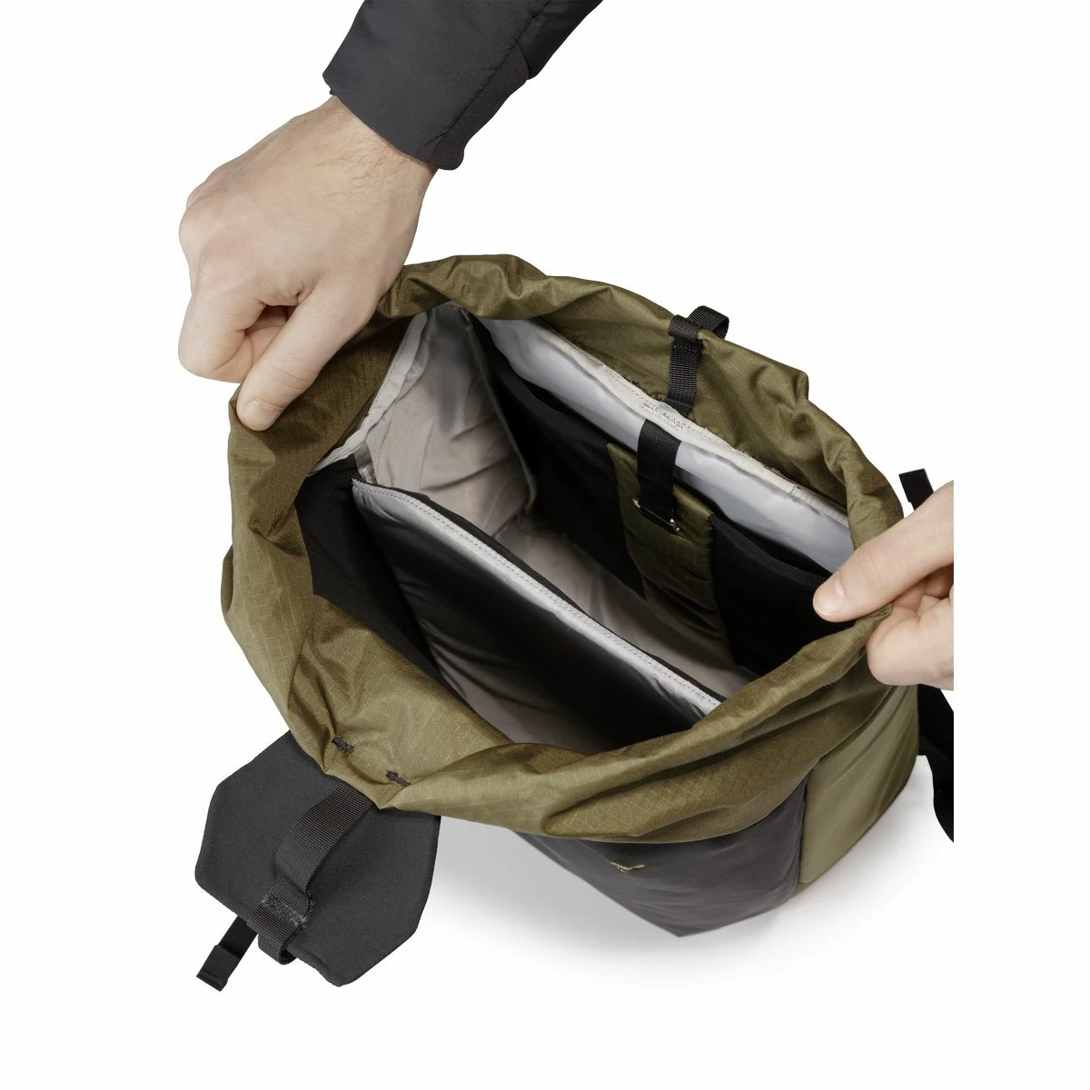 The Arro 20 Bucket Bag brings the durability and functionality of an outdoor pack with a contemporary style for urban commutes . A fast and secure pull-to-open / pull-to-close drawcord eases access to the internal compartments for organizing everyday essentials.