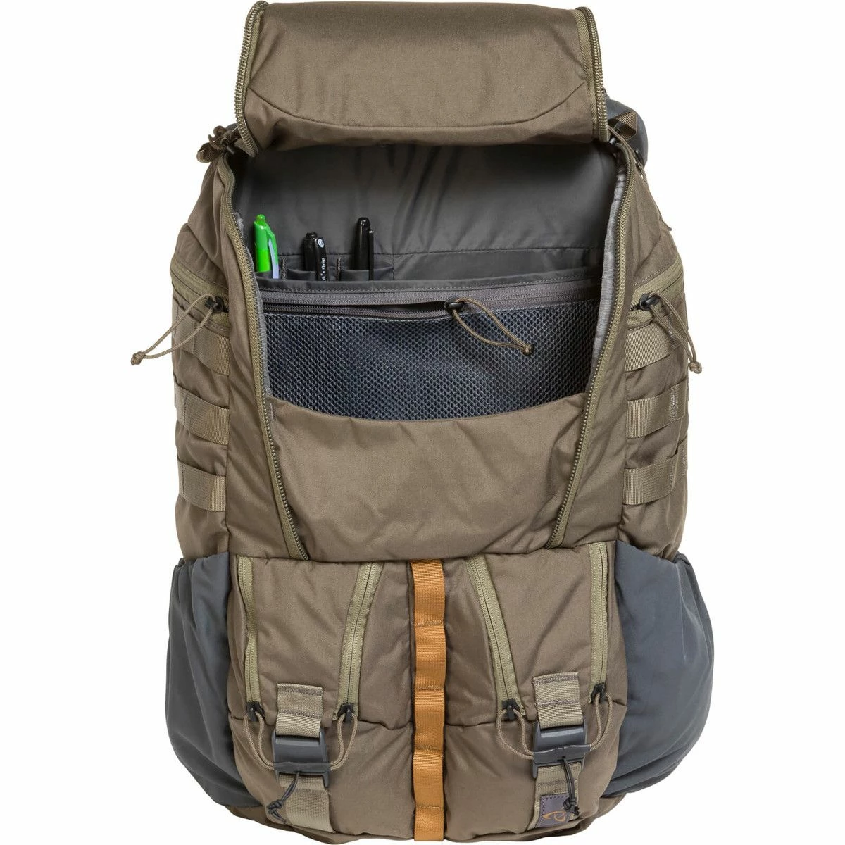 The Mystery Ranch RIP RUCK 32, the largest in the series, – the Swiss Army Knife – has two main compartments: a zip access to separate laptop and document sleeve and a Rip-Zip compartment that has a sleeve, zippered mesh pocket and plenty of space for all your other must-haves. Other features include side stretch-woven pockets, PALS webbing and daisy chain for attaching accessories, and plenty of exterior pockets – four to be exact – for quick access and organization.